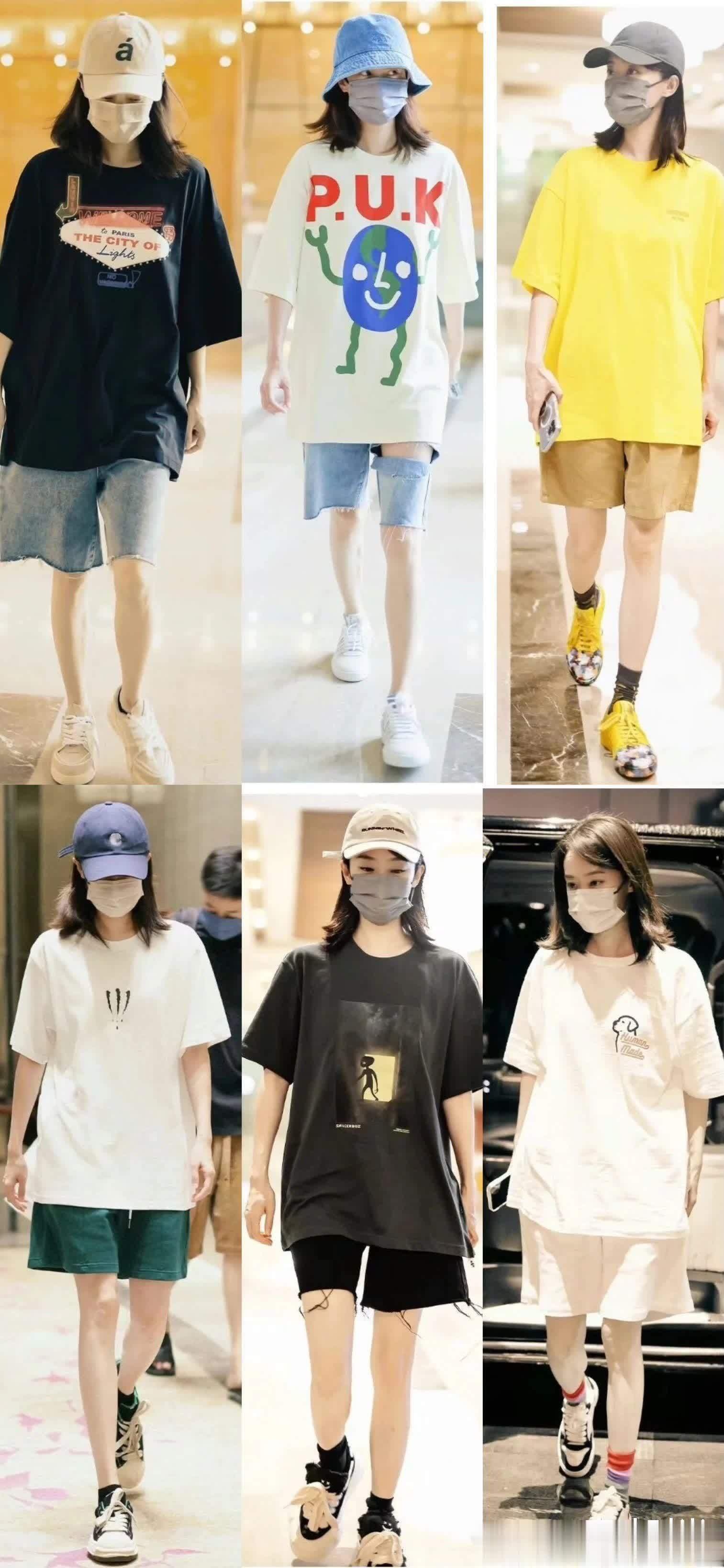 T恤不仅是我们普通人,娱乐圈的明星们在平时出街的时候,她们也很喜欢用T恤作为搭配,简单,舒适,还不限年龄。