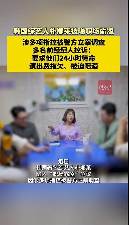 12月5日,据现代快报消息,近日,韩国综艺明星朴娜莱陷入职场霸凌争议,多名前经纪人联名控诉其职场霸凌。目前,朴娜莱因涉多项指控已被警方立案调查。