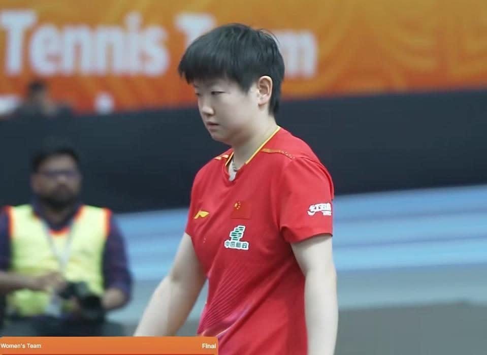 女团半决赛,中国女乒对阵韩国女乒,孙颖莎、王曼昱、王艺迪出战。第一盘,世界第一孙颖莎以3-1战胜韩国一姐申裕斌。